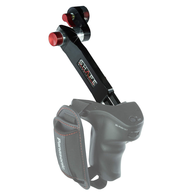 Bras extensible pour installer la poignée latérale Panasonic AU-EVA1 Accès facile au bouton de démarrage/arrêt du record, à l'iris et au bouton de mise au point de la poignée latérale SHAPE Push-Button breveté avec rotation de 360 degrés pour plusieurs options de positionnement Vis à bouton pour régler la longueur du bras extensible Longueur de réglage jusqu'à 5 cm (2 pouces) Facile à installer et à régler Ne peut être fixé sur la plaque de fixation qu'avec ARRI rosettes standard