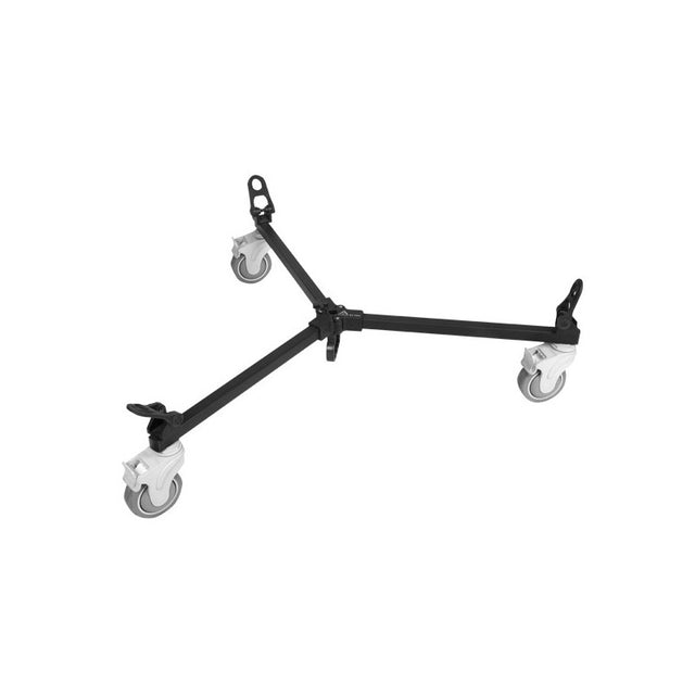 Le chariot universel pour trépied de poids moyen est également doté de roues à verrouillage individuel, d'une poignée intégrée pour un transport facile et d'un simple verrou à bras unique.